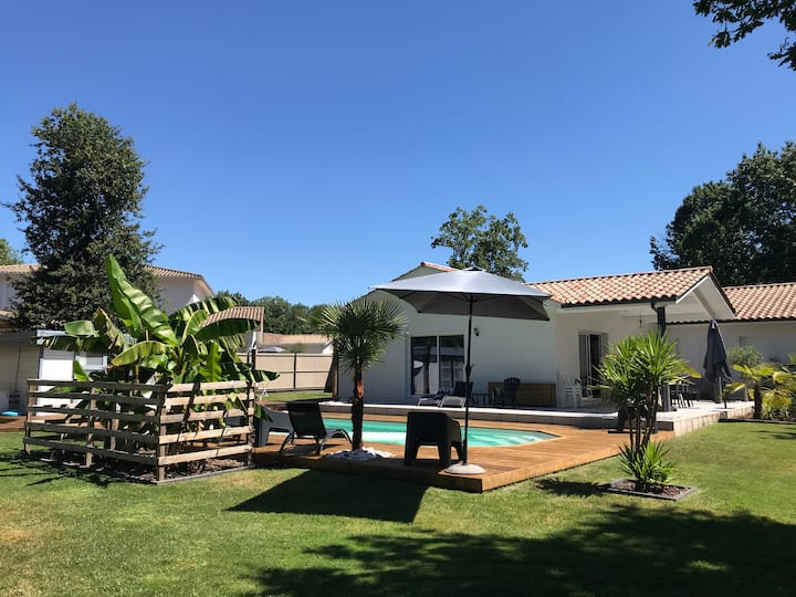 Nous sommes un couple avec 3 enfants , Matthieu 23 ans, Manon 22 ans et Emma 18 ans. La construction de notre maison s'est terminée en Janvier 2015. Nous sommes ravis de la louer afin d’en faire profiter d’autres familles en leur permettant aussi de découvrir cette belle région d’Aquitaine. Notre devise : "S’il est possible, autant que cela dépend de vous, soyez en paix avec tous les hommes".