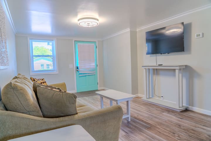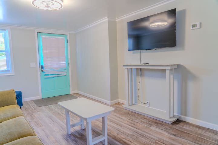 Cette maison magnifiquement rénovée a été convertie en duplex. Les voyageurs qui réservent cet appartement profiteront de leur propre espace privé au niveau inférieur (logement A). Cette propriété a été entièrement rénovée du sol au plafond et dispose d'un nouveau revêtement de sol, d'un nouveau toit, de nouvelles salles de bains, de toilettes, de nouveaux appareils électroménagers, de la peinture fraîche, de nouveaux meubles, d'une piscine partagée, d'un putting green, d'un foyer et bien plus encore !