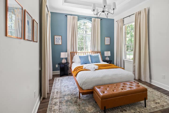 Niché dans un quartier calme et bordé d'arbres, Ivy Grove est un refuge spacieux et bien pensé où le confort rencontre le charme. Avec ses espaces intérieurs luxueux, ses commodités amusantes et ses espaces de détente extérieurs élégants, cette maison est faite pour créer des souvenirs en famille et entre amis. Le petit chalet peut également être loué pour le même séjour ou pour des séjours différents. Consultez l'annonce pour plus de détails.