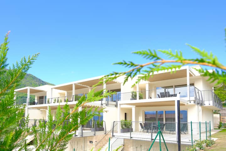 Côte Blu-Piscine et Terrasse avec vue sur le lac