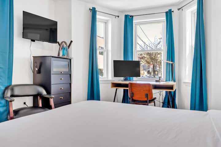 Grande chambre, bureau privé, promenade jusqu'au mit, près des magasins
