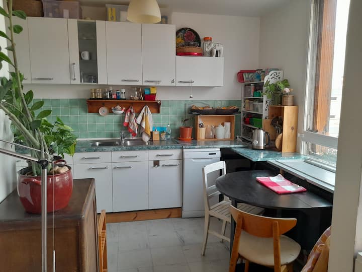 Une chambre privée dans un logement, incluant l'accès aux espaces partagés.