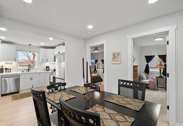 Avec trois chambres confortables, des machines à sons équipées et des options de veilleuse, de nouveaux matelas en mousse à mémoire de forme et des draps et des couettes douces, des rideaux occultants dans la chambre principale et la chambre superposée, cette maison dort beaucoup et offre la retraite parfaite pour les groupes de toutes tailles. La salle de bain principale et la salle de bain secondaire ont été rénovées et sont équipées d'un ventilateur avec haut-parleur Bluetooth pour plus de confort. La toute nouvelle laveuse et sécheuse Samsung super rapide ajoute à la facilité de votre séjour.