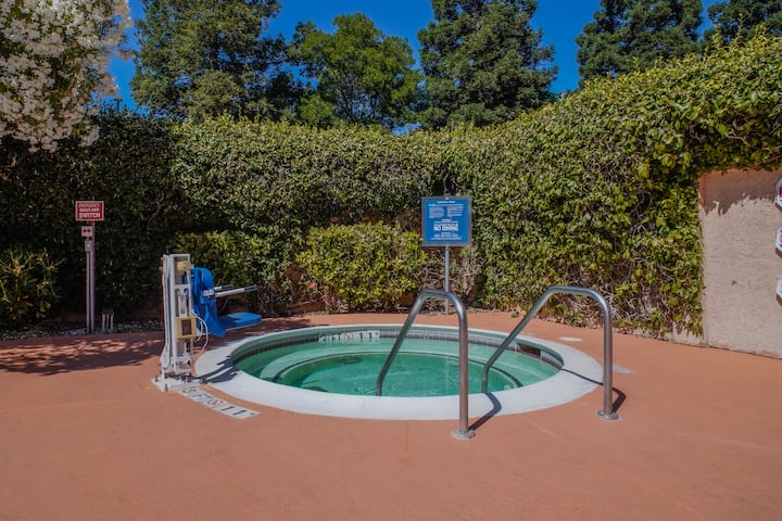 L'accès des voyageurs se fait par une chambre privée (avec salle de bains privative et salle de bain privée). Les espaces partagés comprennent notre piscine/jacuzzi, nos salles à manger extérieures, nos patios et nos espaces hall/boutiques de cadeaux. Il y a des sentiers de randonnée près de l'hôtel, et nous sommes à environ 1,5 m de Bernal Plaza, qui regorge de restaurants, d'épiceries et d'autres détaillants populaires.