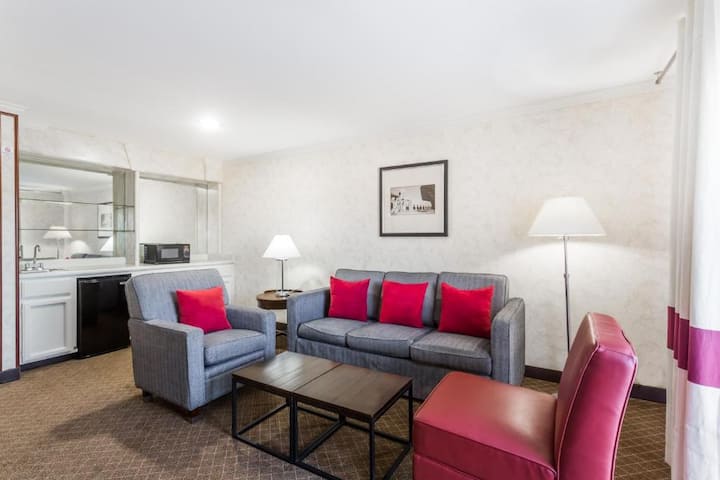 Nous proposons des chambres Standard (chambres extérieures de style motel avec un lit King ou deux lits doubles) et Deluxe (cour et oasis au bord de la piscine, chambres intérieures avec un lit King ou deux lits Queen). Nous avons aussi des chambres accessibles sur demande.