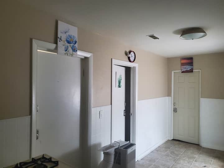 Une chambre privée dans un logement, incluant l'accès aux espaces partagés.