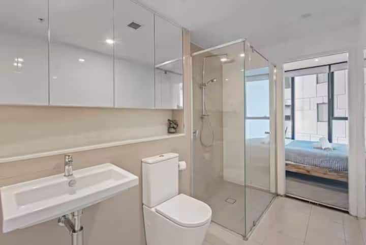 Idéalement situé au cœur du quartier des affaires, vous serez à proximité, à quelques minutes des jardins botaniques, des stations de bus et du centre commercial Queen Street.