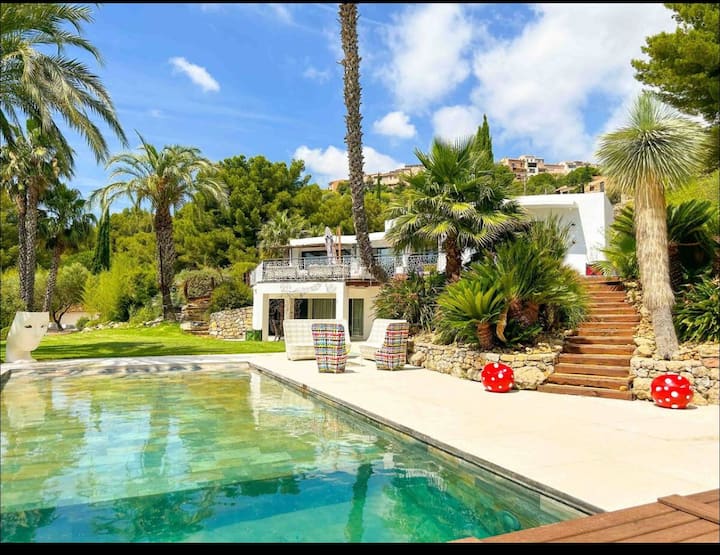 Propriété exposée plein sud sur un hectare entièrement clos et sans vis-à-vis, ponctuée d'arbres de palmiers et d'essence méditerranéennes.