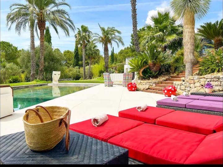 Bienvenue dans cette superbe villa à la bâtisse contemporaine de 350 m². À l'intérieur, vous découvrirez un espace élégant et spacieux. Elle est composé d’un séjour avec cheminée, d’une salle à manger et d’une cuisine entièrement équipée. Les 5 chambres, dont 4 suites, sont spacieuses et disposent pour la plupart de leur propre salle d’eau.Vous profitez profiter d’un court de tennis ou encore d’un terrain de foot en herbe. WIFI et climatiseurs réversibles. Linge de lit, serviettes fournies.
