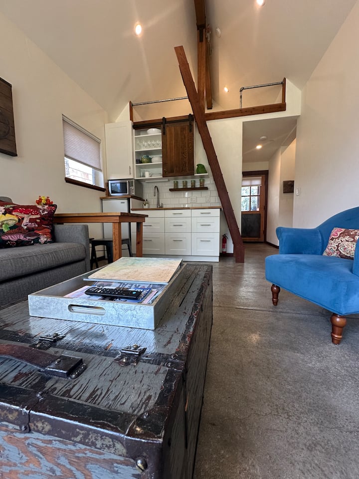 Sur LA RIVIÈRE TRUCKEE dans le centre-ville historique, notre petit endroit est à 2 pâtés de maisons à pied des restaurants et des magasins. Vous adorerez notre logement parce que vous pouvez vous asseoir à l'intérieur ou dans le lit et regarder la rivière couler. C'est un endroit paisible, neuf et moderne, privé et au milieu de tout. Ce n'est pas seulement un endroit où rester, c'est une destination. Personnes CALMES seulement, s'il vous plaît.