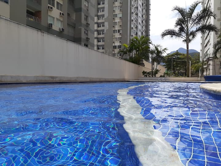 Piscine chauffée et centre de remise en forme. Appartement très bien aéré. Environnement sécurisé avec des gardiens 24 h/24, 7 j/7. À côté des principaux centres commerciaux, collèges, supermarchés, centres d'affaires, arrêt de métro, BRT- Bosque Marapendi, arrêts de bus et de taxi et l'une des plus belles plages au monde, celle de Barra da Tijuca.