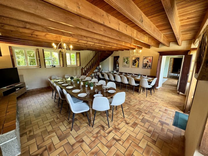 La Longère 1750 30pers Hambye piscine grand jardin