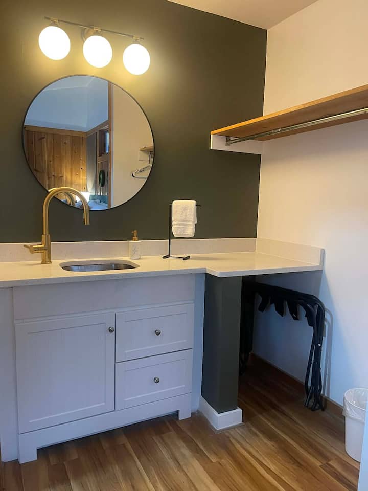Le Wildrest donne l'impression de faire un bond dans le passé, à la magie rajeunissante du camp d'été quand on était enfant. Le gravier crisse sous vos pneus, comme sur la vieille route du camp, et en descendant l'allée, la lumière du soleil est filtrée par une canopée d'arbres. L'odeur du pin et de la terre réchauffée par le soleil vous ramène instantanément en arrière. Vous vous attendez à voir un feu de camp ou à entendre le son lointain d'une cloche annonçant le dîner. On voit maintenant les murs de pierre et les poutres en bois d'un chalet de montagne de 1946. C'est rustique, accueillant et intemporel.