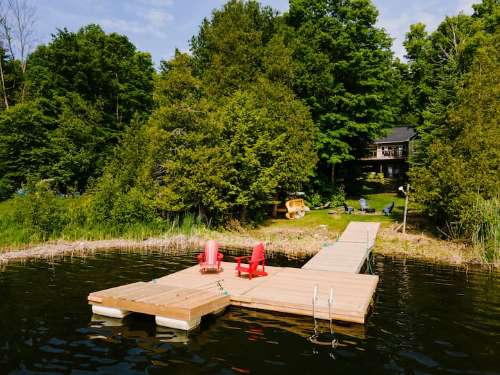 Vivez une retraite pleine de conscience dans un chalet au bord d'un lac. Niché sur un lac privé aux eaux claires et au rivage peu profond. Profitez de la pêche et de la baignade au large du quai. Détendez-vous près du foyer, dans le spa ou à l'intérieur, confortablement installé près du foyer au bois. Internet Starlink.