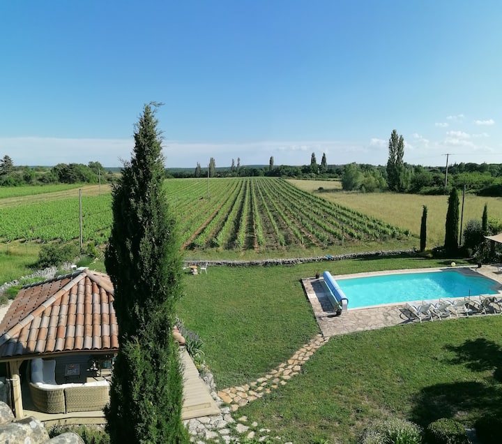 Le mas de Dumas est un authentique Mas provençal en Ardèche méridionale entouré de champs de lavande et de vignes à perte de vue.