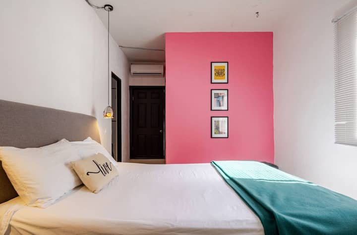 Unité lit queen+accès à la terrasse et aux espaces communs