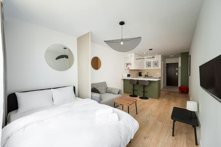Nous traitons les voyageurs de manière professionnelle. Notre mission est de fournir des services au plus haut niveau de l'hôtel dans les appartements de location de courte durée. Nous prenons personnellement soin de préparer chaque appartement pour l'arrivée des voyageurs. Dans notre norme, nous fournissons : des cosmétiques hôteliers de haute qualité, des appartements entièrement équipés et un kit de bienvenue pour chaque voyageur : café, thé, eau, cadeau sucré. Rassurez-vous, séjourner dans des appartements gérés par BookingHost vous laissera de bons souvenirs et vous fera revenir vers nous. Nous sommes des personnes qui partagent une passion pour les voyages. À chaque étape de votre réservation, nous vous invitons à nous contacter. Nous serions ravis de vous recommander les meilleurs restaurants du quartier et les endroits les plus intéressants à visiter.