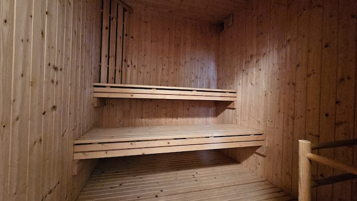 Bienvenue dans cette villa spacieuse et confortable à Henån, Orust, idéale pour une ou deux familles à la recherche de vacances confortables et actives près de la mer et de la ville. La maison peut accueillir jusqu'à 9 voyageurs et dispose de quatre chambres et d'un salon avec un divan-lit. Vous trouverez ici tout ce dont vous avez besoin pour vous détendre et profiter : un sauna, un grand jardin d'hiver, un jacuzzi à bulles, un trampoline et une belle pelouse pour jouer et faire des jeux en plein air. La terrasse accueillante est parfaite pour les barbecues, et la véranda avec des sièges pour huit personnes vous permet de profiter des repas en plein air, peu importe la météo. Il y a deux salles de bain : une avec une baignoire et une avec un sauna et une douche.