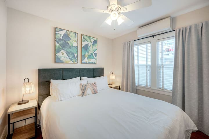 Les voyageurs ont un accès privé à l'unité avant, au grand porche avant et à l'espace barbecue, parfait pour se détendre et manger à l'extérieur. Vous aurez également accès à un petit garage de stationnement et à une buanderie commune située sur le côté de la maison. N'hésitez pas à utiliser les chaises de plage ou les jouets disponibles sur place, bien que la disponibilité ne soit pas garantie.
