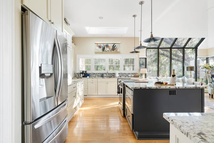 Profitez de la lumière naturelle qui inonde dans le plan d'étage ouvert, vous invitant à vous ressourcer. Préparez des repas savoureux dans la cuisine gastronomique entièrement équipée avec un refroidisseur à vin, qui est équipée d'appareils modernes avec une cafetière goutte à goutte et un keurig et un grand espace de comptoir, et rassemblez-vous autour de la table à manger dans la cuisine ou la salle à manger formelle pour vos repas plus formels pendant que vous appréciez vos créations culinaires.