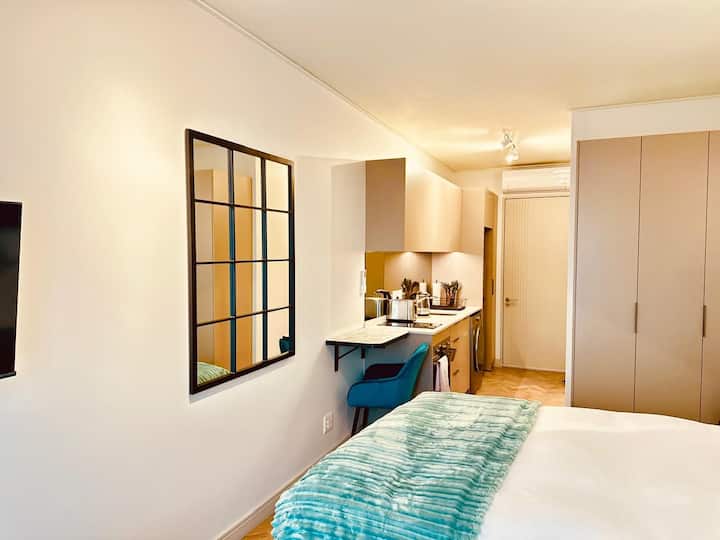 Une chambre avec wifi bien aménagée pour travailler.