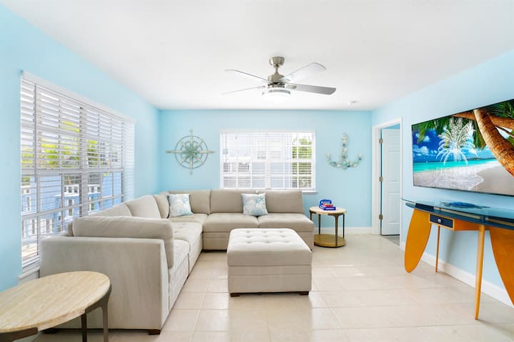 2/2 condo à un pâté de maisons de la plage et voiturette de golf, kayaks