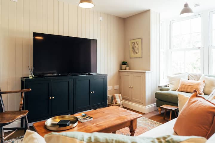 Nuthatch est situé sur une ruelle tranquille. Ralentissez. Respirez. Préparez-vous un café et asseyez-vous simplement sur le banc dans le jardin avant clôturé et contemplez la vue magnifique sur la forêt qui s'étend de l'autre côté de la voie. Ou ouvrez la cuisine-salle à manger sur le jardin de la cour ensoleillée. Avec ses tables et ses chaises, son foyer Solo Stove et son barbecue, c'est l'endroit idéal pour se détendre et discuter autour d'un verre en soirée ou d'un souper en plein air. Levez les yeux et admirez les étoiles. Les vastes cieux nocturnes de Brockenhurst sont un véritable spectacle.