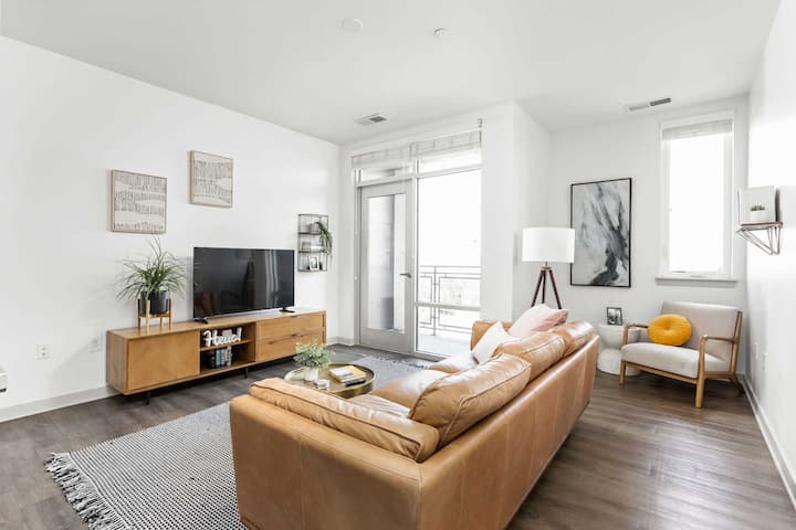 Notre spacieux appartement d'une chambre dispose d'un salon accueillant, d'une cuisine entièrement équipée et de salles de bains avec des articles de toilette.