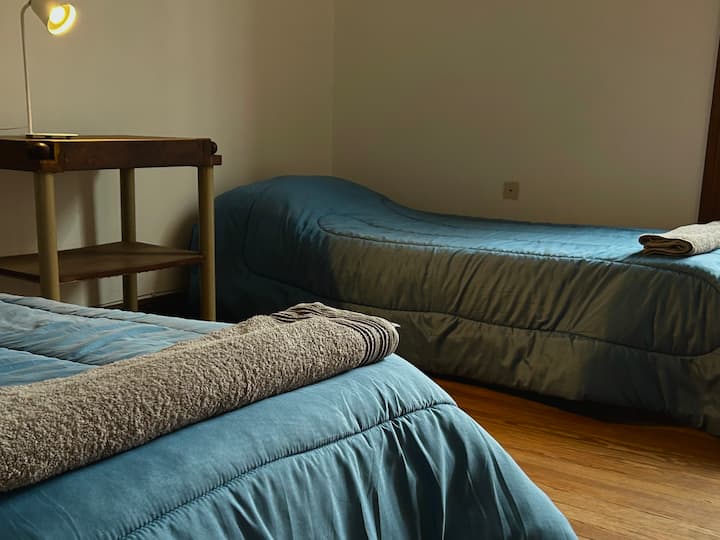 Une chambre privée dans un logement, incluant l'accès aux espaces partagés.