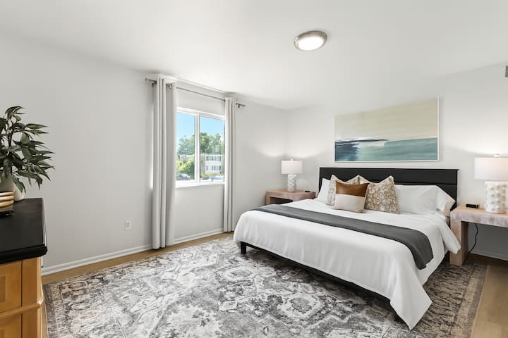 Retirez-vous dans la chambre principale sereine, avec une literie moelleuse et des rideaux occultants pour une nuit reposante. Que vous soyez en train de vous ressourcer ou de travailler, vous vous sentirez comme chez vous.