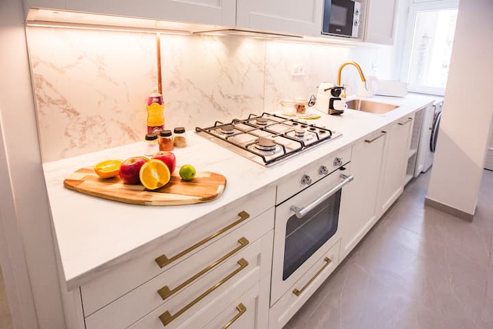 Alimentez vos aventures avec des repas faits maison préparés dans une cuisine confortable équipée de tout le nécessaire : micro-ondes, grille-pain, machine à café à capsules Nespresso, un grand réfrigérateur avec congélateur, bouilloire, une cuisinière à gaz, un ensemble de salle à manger et des produits de base pour la cuisine. On a aussi une laveuse-sécheuse 2-en-1 ici. Profitez d'un café du matin, jetez une petite omlette pour le petit-déjeuner ou ramenez à la maison la nourriture délicieuse que vous avez mangée dans l'un des merveilleux restaurants à proximité.