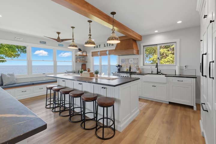 Certains jours, vous n'aurez tout simplement pas envie de quitter la maison! Profitez de la piscine étincelante avec des chaises longues ou de la plage au bord de l'eau. Le grand porche en bord de mer ou le belvédère sont l'endroit idéal pour prendre un café le matin ou profiter des meilleures vues sur le coucher de soleil de la côte Est. Le patio arrière comprend également un coin repas extérieur, un spa, un sauna et la grande terrasse de la maison d'invité. Allumez le barbecue ou la pierre noire pour un festin de crabe, ou détendez-vous simplement en regardant les voiliers passer.