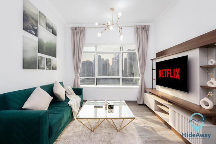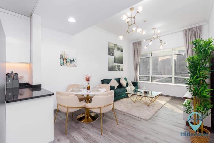 🏙️ Élégant 1 chambre dans JLT | À quelques pas du métro DMCC | 5 personnes | Piscine et gym