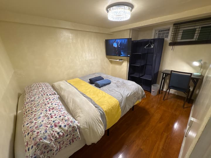 Vous réservez une chambre privée dans un logement Airbnb de 5 chambres situé au rez-de-chaussée.