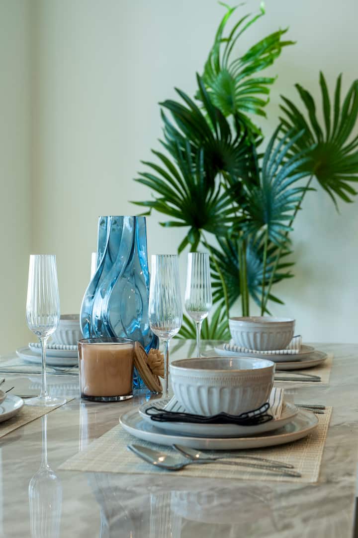 - Équipements de cuisine de base, avec ustensiles, couverts, assiettes, bols, verres, tasses, etc.