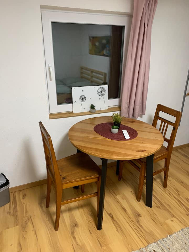 La chambre est certes totalement rénovée et agréable, mais il y a un inconvénient. Il y a une fenêtre, mais malheureusement, elle n'a pratiquement aucune fonction, car une nouvelle maison a été construite directement à côté. Comme je l'ai dit, la chambre est super fine, mais sans vue ni lumière du jour !