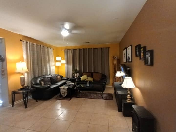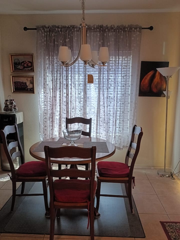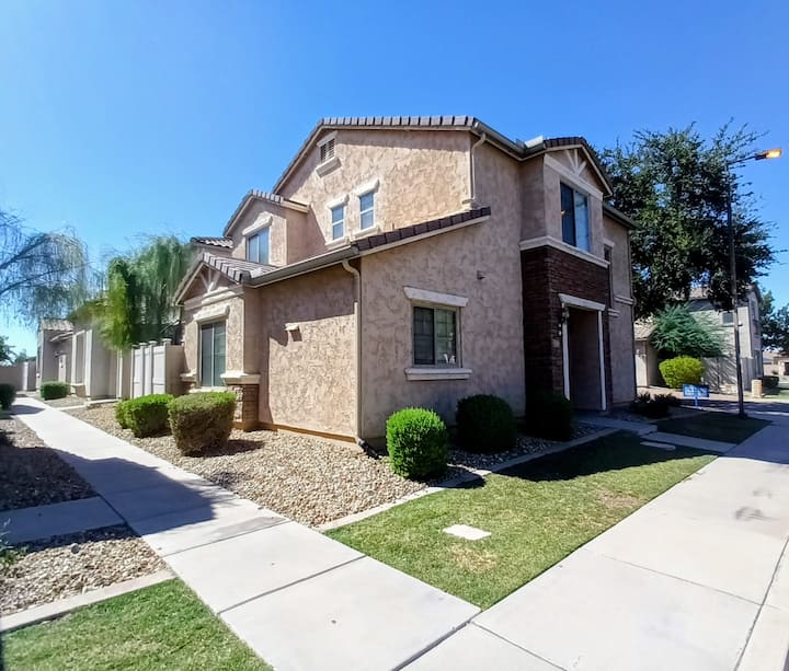 À quelques pas de l'amphithéâtre Talking Stick, cette maison calme et sécurisée offre une chambre principale spacieuse avec un lit king size, une télévision connectée de 50 po, un ventilateur de plafond et une serrure sécurisée. Cuisine partagée et piscine saisonnière. Idéal pour les infirmières ou les professionnels en déplacement : proche de l'I-10, de la 101, des hôpitaux, des restaurants, des gymnases et des terrains de golf. Heures de calme de 22 h à 8 h. Hôte discret de 69 ans sur place. Veuillez éviter de laisser des objets de valeur dans la chambre.