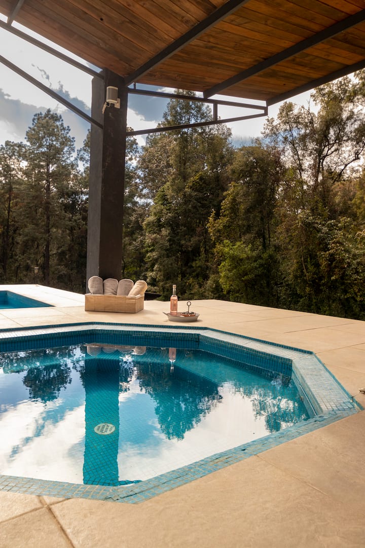 À seulement 80 minutes de la ville de Mexico et à 30 minutes de Valle de Bravo, votre espace vous attend, un refuge exclusif de 6 000 m² conçu pour le repos, l'aventure et le plaisir. Cette résidence privée de 600 m² n'est pas seulement une maison, c'est une oasis de paix et de luxe au milieu de la forêt, à 10 minutes à pied du majestueux Grand Stupa.