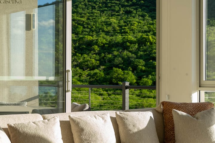 La chambre principale offre un lit king size, une salle de bain privée et une belle vue sur la colline, tandis que la deuxième chambre se trouve à côté d'une autre salle de bain complète. Chaque chambre comprend la climatisation et des téléviseurs intelligents, pour vous assurer de rester au frais et connecté après une journée au soleil.