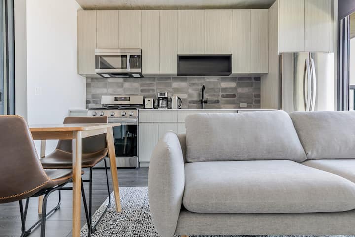 Chaque appartement est soigneusement conçu avec du mobilier exclusif, des cuisines entièrement équipées et des équipements incroyables : chaque jour sera une expérience cinq étoiles. Dès le premier jour, vous profiterez d'une connexion Wi-Fi haut débit, de draps haut de gamme et d'un divertissement à domicile intelligent. En plus, l'accès aux piscines, aux gymnases et aux espaces extérieurs dans certains bâtiments.