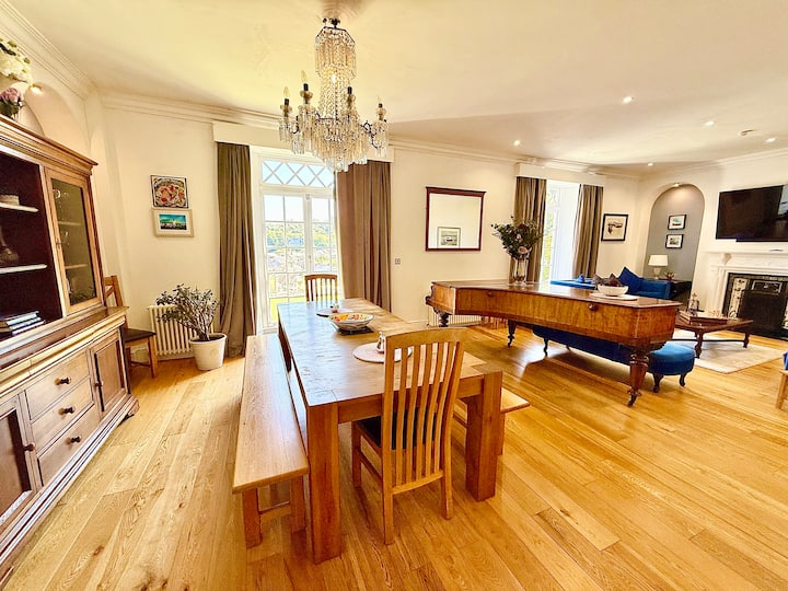Bienvenue à Fernhill House, un majestueux manoir géorgien perché au-dessus de l'estuaire tranquille de Laugharne, où l'élégance intemporelle rencontre des paysages à couper le souffle.
