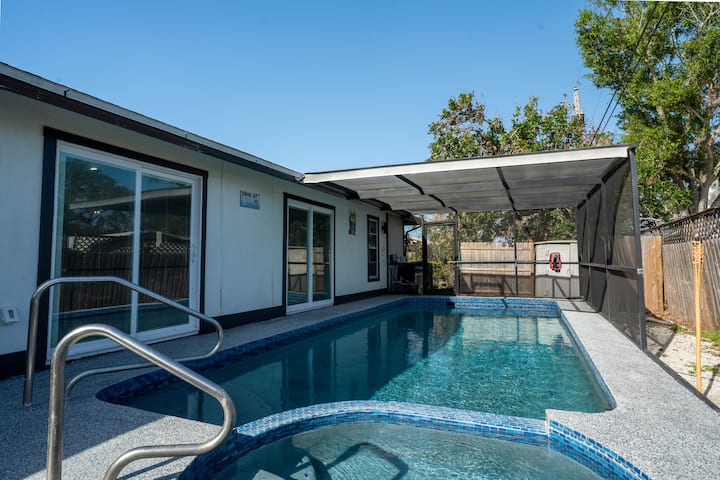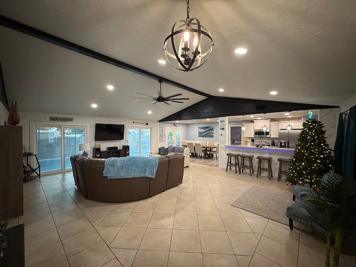 Maison avec 3 chambres, 2 salles de bain, piscine et salle de jeux à 1 mile de la plage