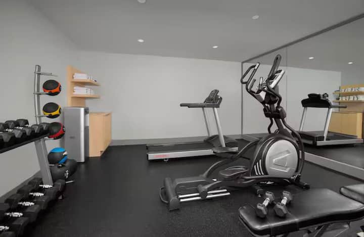 ✔️ Piscine extérieure + centre de remise en forme pour les temps d'arrêt ou les séances d'entraînement