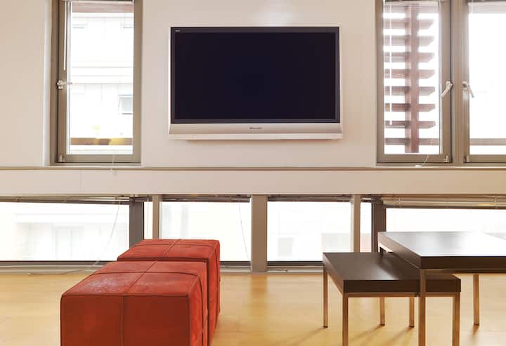 Cet élégant appartement au dernier étage est baigné de lumière naturelle et dispose de fenêtres du sol au plafond avec vue dégagée sur la ville. L'intérieur est soigneusement conçu avec des lignes épurées et une atmosphère urbaine calme.