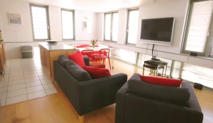 * Cuisine entièrement équipée avec bar à déjeuner, four, micro-ondes, réfrigérateur/congélateur, lave-vaisselle et machine Nespresso