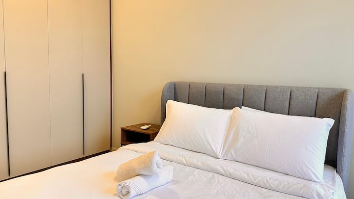 L'ensemble de ce studio privé dispose d'une salle de bains privée, d'une chambre, d'une mini cuisine pour votre commodité et votre confort. Il comprend une mini cuisine pour une préparation facile des repas, un mobilier de bon goût et une télévision intelligente avec un abonnement Netflix pour le divertissement. Vous pouvez profiter d'une connexion Wi-Fi haut débit à 100 Mbit/s pour rester connectés. En outre, le logement dispose de grandes fenêtres qui remplissent l'espace de lumière naturelle, créant une atmosphère chaleureuse et accueillante. La chambre offre un lit queen size confortable orné de draps moelleux, assurant une nuit de sommeil réparatrice après une journée d'exploration.