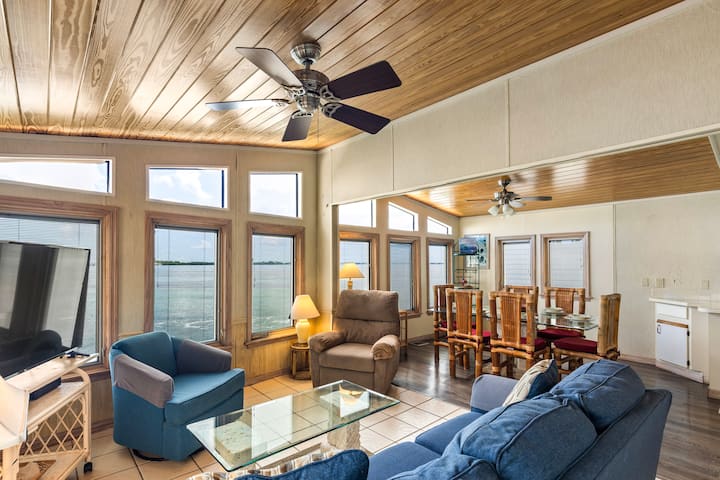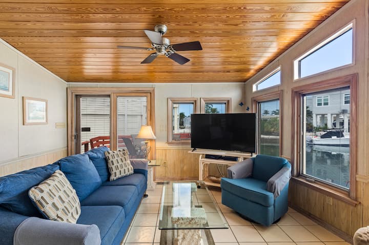 Bienvenue à Mariner 's Nook, une charmante escapade de 2 chambres et 2 salles de bain perchée à l'angle d'un canal et d'une eau libre, offrant certaines des vues les plus époustouflantes des Lower Keys. Depuis presque toutes les fenêtres, vous profiterez d'une vue imprenable sur l'océan qui remplit le salon et la salle à manger d'horizons bleus infinis. À l'extérieur, une vaste digue de 50 pieds qui peut accueillir jusqu'à un bateau de 48pieds fournit tout ce dont vous avez besoin pour vivre au bord de l'eau, y compris une table de nettoyage du poisson, des poteaux de quai, des taquets et une échelle de baignade pour un accès facile à l'eau. Détendez-vous sur le porche ouvert surplombant l'océan, où une table à manger extérieure pour quatre personnes met le décor pour les repas au coucher du soleil, ou étirez-vous sur les chaises longues à quai et regardez les bateaux passer.