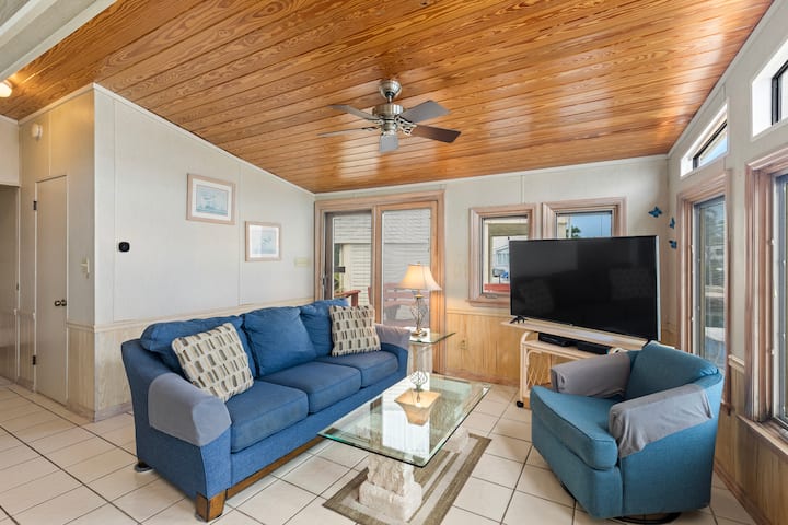 À l'intérieur, la maison est soigneusement conçue pour le confort avec la climatisation centrale, Internet sans fil et la télévision par câble. La chambre principale dispose d'un lit queen size, tandis que la chambre d'hôtes est équipée de deux lits jumeaux/lits superposés doubles, ce qui la rend idéale pour les familles ou les groupes. Un lave-linge et un sèche-linge ajoutent de la commodité, afin que vous puissiez rester frais après une journée de baignade, de navigation de plaisance ou de pêche. Que vous soyez à la recherche d'une retraite paisible ou d'une expérience aventureuse, Mariner 's Nook offre un mélange parfait de charme côtier et de vues inoubliables.