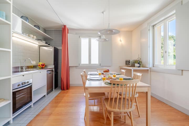 Cet appartement de quatre chambres allie le confort moderne au charme de Guimarães. Pouvant accueillir jusqu'à six personnes, il dispose d'un salon spacieux, de deux salles de bains élégantes et complètes, d'un WC et d'une terrasse de jardin privée qui invite à des petits déjeuners lents ou à des soirées vin en plein air. Les espaces de travail dans chaque chambre sont parfaits pour les familles, les groupes ou les nomades numériques. Avec une cuisine tout équipée et l'accès à une buanderie commune avec laveuses et sécheuses, les séjours longue durée sont sans tracas.