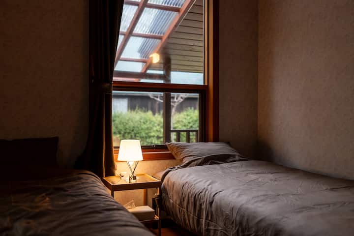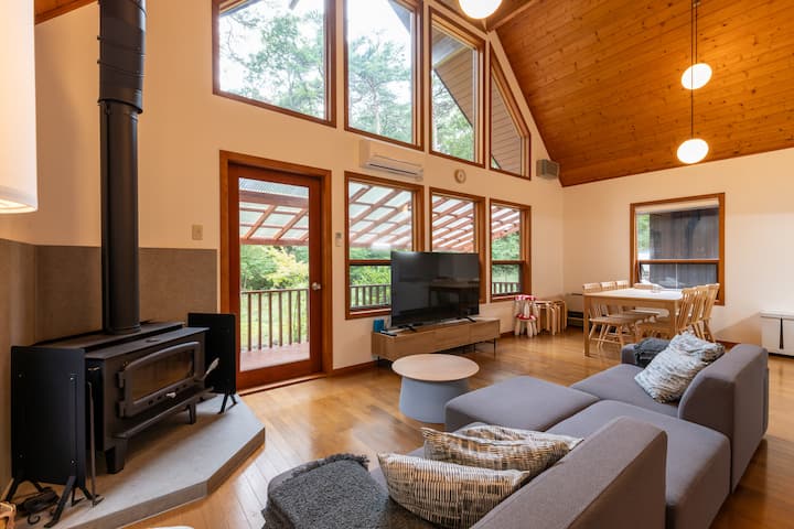 Un poêle à bois est installé dans le salon avec de grandes fenêtres dans la cage d'escalier.Regarder les flammes vaciller est la meilleure façon de se détendre.Nous fournissons du bois de chauffage, donc vous pouvez en profiter sans rien apporter.* Il y a des frais.